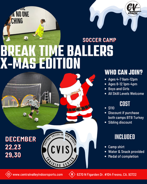 Join us this holiday season at Central Valley Indoor Sports for a fun and exciting soccer camp!
